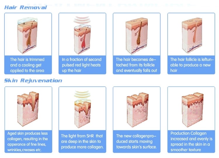 Aged skin produces less collagen, resulting in the appearance of fine lines, wrinkles, creases etc.The light from SHR that are deep in the skin to produce more collagen.The new collagen produced starts moving towards skin’s surface.